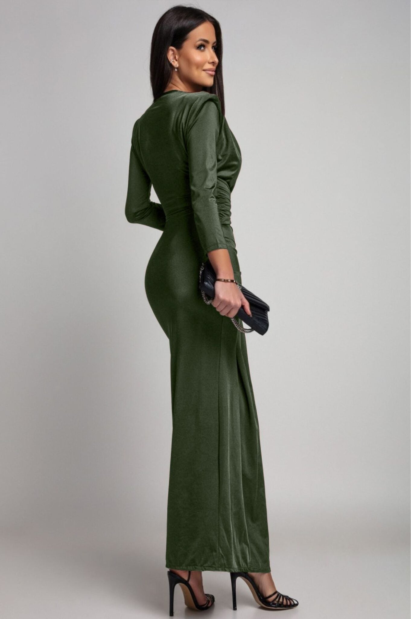 Φόρεμα maxi με αγκράφα χακί